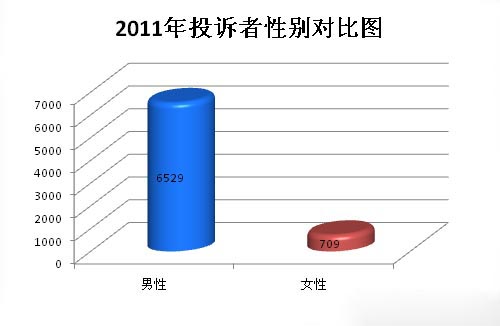 2011年中国汽车质量网投诉者中,男性人群有6529人,女性人群只有709人,男性占九成之多。这说明在车辆问题的认知方面,男性要优于女性,对于车辆问题有一定的判断能力。女性消费者还需要多加强车辆知识方面的了解,对于车辆问题及时发现,以免留有安全隐患。