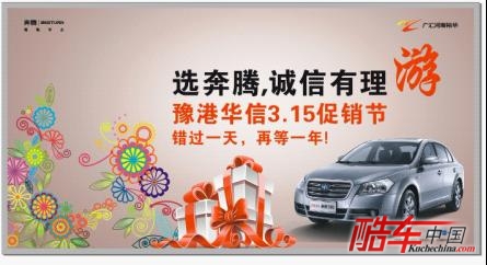 为祝贺豫港华信2011年赢得全国销量总冠军同时也为了315宣传品牌形象,厂家特批给我们7台特惠车挑战车展价,只要您在3月11—15日期间到店订购任意奔腾车即有机会抽取“欧洲游”。