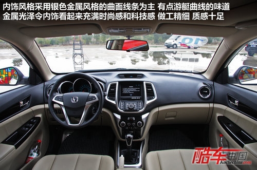 整体内饰风格采用了银色金属风格的曲面线条为主,有点游艇曲线的味道。金属反射出的光泽令内饰看起来充满时尚感和科技感,做工也精细,质感十足。整体内饰让人一进门就有种科技的、运动的、品质的体验。逸动在内饰的造型及研发中,甚至还运用了“光机一体化测试”,这是一种测试内饰对驾驶者的不良反光的技术。