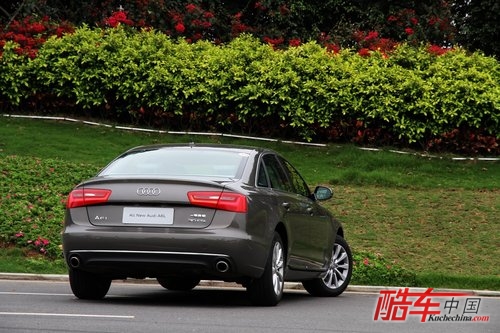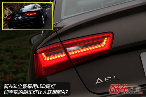 车头大灯造型狭长,配以六边形大嘴进气格栅,车身线条简洁大方,从大灯向后延伸的腰线一直传递到尾灯,一气呵成。穹型的车顶和半月形的侧窗轮廓则与上一代A6L几乎一样,保留了中大型轿车应有的大气和尊贵感,同时也让人感觉到一丝老款车不具备的科技感和激情。比老款略微动感、前卫的造型使得新A6L看上去年轻不少,对于私人用户的吸引力应该更大。再加上厂方表示奥迪A6L的用户中私人比例已经很高,我们认为更加年轻的新A6L应该会有更广泛的受众面。以往觉得A6L太过老成和考虑宝马5系的用户,现在可能得在5系和A6L之间权衡一番了,整体来看奥迪的前卫程度丝毫不逊于宝马。