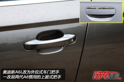 全新A6L弃用了前两代车型使用的上掀式车门把手,改为更主流的外拉式把手。二者功能上差别不大,不过外拉式车门把手在出现事故车门被卡住时更便于营救人员施救。