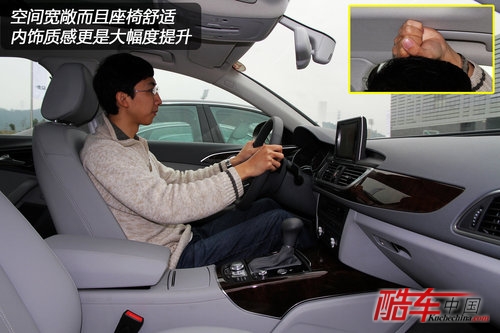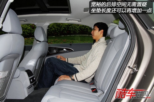 除了扶手尺寸超级巨大,新A6L的后排空间也十足宽裕。把前排座椅调节到最前,后排的空档足够横着蹲下一个人,翘起二郎腿自然也不在话下。座椅的造型总体上比较平坦,但肩部和腰部也能提供一定的包裹。如果用挑剔的眼光看,A6L的后排坐垫还可以再长一点,这样可以给大个子乘客提供更为充分的大腿支撑。另外我们乘坐的30FSI的头枕比较硬,虽然不算重要,但对于A6L这个级别的高级轿车,本身乘坐舒适性、静音性已十分出色,稍有一丁点的不足就容易体现出来。