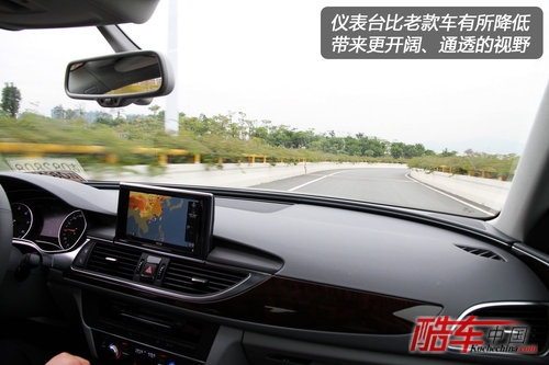 落座于新A6L的前排,除了宽裕的空间和剪裁精良贴身的座椅外,最大的体验是比老款A6L明显多出一份敞亮和通透的感觉。这是因为新A6L的仪表台高度被刻意降低了,MMI多功能显示屏在不用时还可以收纳到仪表台内,这一设计与奥迪A7完全一致。新的MMI显示屏采用了类似iPad一样轻巧、纤薄的设计理念,不仅提升了驾驶舱的科技氛围,更让前排乘客享受到更为宽广的前方视野。