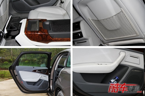 后排座椅的中央扶手加长,上面带有弹出式杯架和两个有盖子的储物格,比海外标准型新A6的实用性还有所提升,同样,加长的后车门也使得门板储物槽非常宽大。