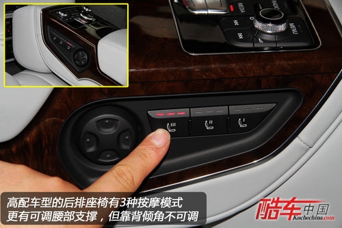 按摩功能是豪华车的特色配置,在国产中大型轿车上也不算常见。而全新A6L在后排座椅加入按摩功能,它可以提供三种按摩方式,每种还分为三种强度,是当前国产中大型车中后排按摩功能最强大的。长途旅行时开启按摩,确实可以很好的缓解肩部和腰部的疲劳感,此次从珠海到深圳全程近600公里的旅途,无论是充当驾驶员还是落座后面的VIP座椅,一天下来几乎没有人抱怨身体有不适感,足见新A6L的舒适性已经达到很高的水平。