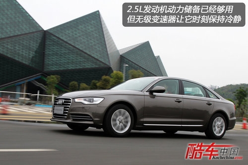 实际在路上,这台2.5L发动机的动力表现依然不如2.0TFSI发动机来的强劲,这与自然吸气发动机峰值扭矩来的较晚有一定关系。另外就是Mutitronic无级变速器对动力的梳理,让本已平顺的自然吸气V6变得更加平滑。即便是低速游走时突然把油门踩到底,也不会出现惊扰到后排乘客的动力爆发。从这种动力传递特性看,全新奥迪A6L 30FSI确是一款适合后座买家的豪华商务车,因为它的性格总是四平八稳,从不给驾驶员放肆的机会,缺乏激情?我倒觉得这对于公务车恰恰是最应该赞扬的素质。无级变速器虽然扼杀了激情,但平顺度无以复加的好,单论动力传递的平滑性,无论是宝马的8AT还是奔驰的7AT都无法与之媲美。