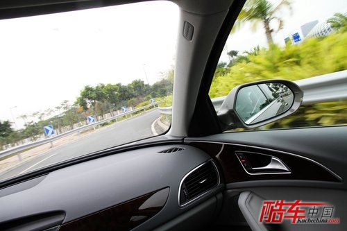 悬挂的吸震能力得到提升,大幅度提升A6L的行驶舒适性,另外新A6L还有一项对于后排乘客非常有参考意义的舒适性指标--车内静谧性。这方面刚性很高的车架是先天保证,再辅以厚实的隔音材料和运转文明高雅的V6发动机,新A6L的静音能力达到非常高的水平,尤其是30FSI的V6发动机声音细腻温柔,即便深踩油门,传入驾驶舱的声音也犹如来自相邻车道的汽车。而后排的乘客更是难以察觉发动机的动静,车速在160km/h之内甚至连风噪都不算明显,不会影响到车内乘客交谈,低风阻系数的车身设计功不可没。