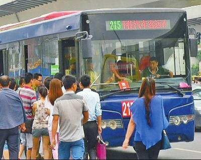早高峰期间,215路人满为患。