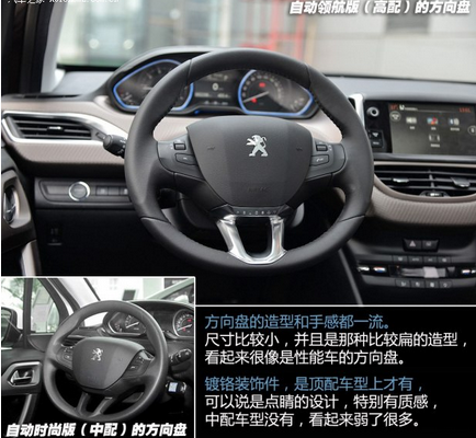 方向盘的尺寸比较小,并且是那种上下比较扁的造型,看起来很像是性能车的方向盘。方向盘下半部分的镀铬装饰件,是顶配车型才有,看起来特别有质感,感兴趣的可以看下中低配车型(点击这里查看低配车),没有这个装饰件,方向盘的质感立减一半。多功能按键是中高配车型标配,左侧控制音量,右侧控制调频。