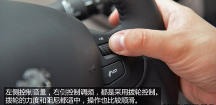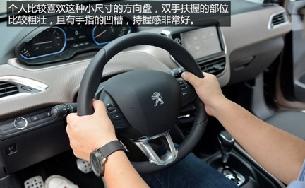 方向盘的手感超赞,个人比较喜欢这种小尺寸的方向盘,稍稍有些粗壮,手握部位贴合手指的凹槽,持握感非常好。遗憾的是这车明显是轻松驾驶风格的,方向盘转向力度偏轻,所以多少有些英雄无用武之地的感觉,后面驾驶部分会详细介绍。