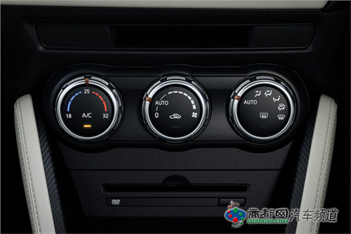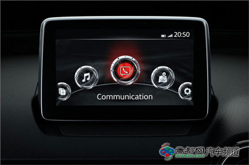 内饰采用了双色打造,车内整体极具高档感,标配了真皮座椅、独立式信息娱乐系统以及抬头显示系统,中控台上三个圆形出风口机具个性,多金属装饰豪华感提升,新车还装置了马自达3上的人机交互系统,前排副驾驶座还增加了控制旋钮。