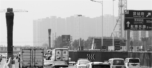 7月26日上午10时许,记者驱车来到中州大道,航海路由南向北行驶,起初,从机场高速下来的机动车以及从航海路上过来的机动车,全部汇聚到中州大道上的交会处,车流量猛然增大,而且车速明显下降,从原来的60公里/小时降低到10公里/小时,且一直走走停停。