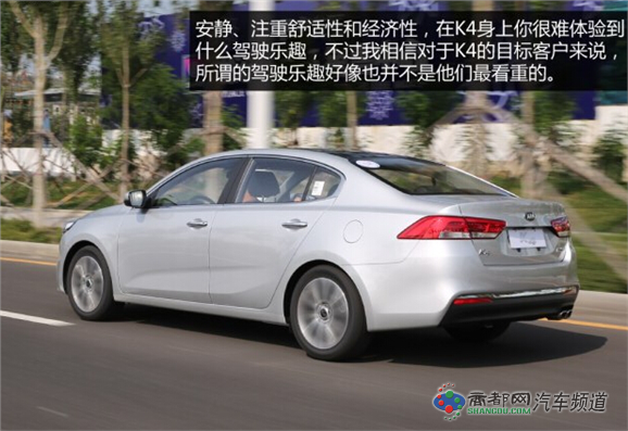 舒适性始终是起亚最重视的一点,K4在这方面做的相当出色。偏软的悬架、反应迟缓的油门和不算精准的转向,都不会让你有激烈驾驶的欲望。开车的时候,你甚至不忍大脚踩下油门,破坏车内安静的氛围。