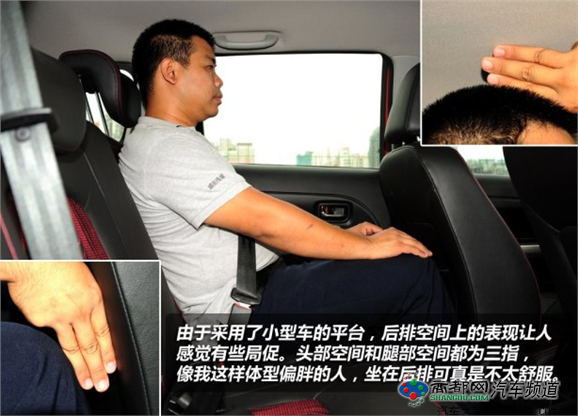 身高180cm的体验者在前排将座椅调至最低后头部还有四指的空间,长城M4方向盘可调节的范围比较小,所以不太容易找到最舒服的驾驶姿势。后排方面,头部和腿部的空间都是三指,考虑到车身尺寸比较小,长城M4这样的表现也能让人接受。