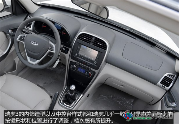 瑞虎3的内饰造型也是和瑞虎几乎完全一致,仅中控面板上的按键进行了微调。中控台使用的都是硬塑料材质,在这个价位中也是很常见的,好在做工方面有了很大的提升。