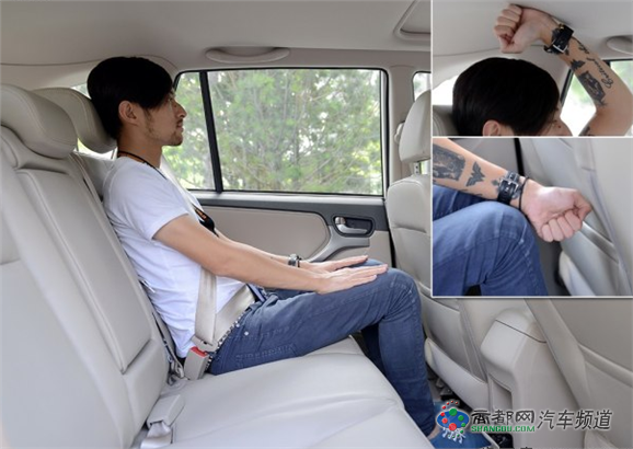 体验者身高176cm,将前排座椅降至最低后头部还有一拳多的空间。后排方面,头部空间也是一拳多,不会觉得压抑,表现不错,腿部空间一拳,表现中规中矩。后排中间位置也配备了头枕和三点式安全带,并且地板的凸起不大,坐人没什么问题。