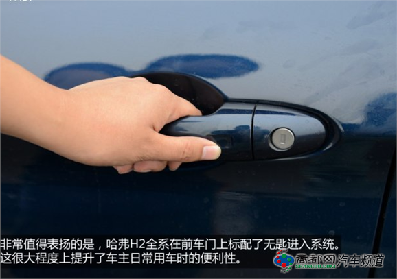 哈弗H2的造型有着明显的家族式风格,大尺寸镀铬中网和H8相似,双色车身涂装的设计显示了它年轻的定位。哈弗H2全系都配备了无钥匙进入/启动,这点在同级别中可是很少见的,能大大提升日常用车的便利性。