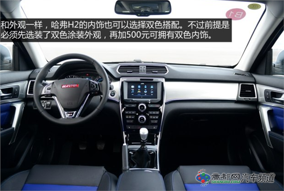 哈弗H2的内饰造型比较简洁,中控屏幕、音响和空调控制区错落有致的排列在中控台上。拉丝铝、钢琴烤漆、银色装饰条的加入令哈弗H2的内饰看着很有活力,整个中控台均由软质材料所覆盖,无论触感还是豪华感都要优于同级别对手。