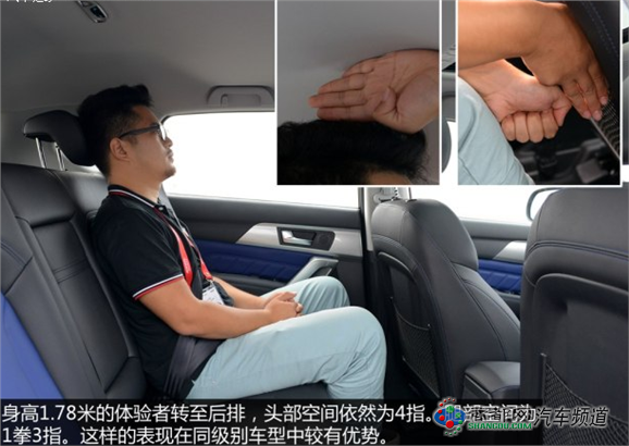 身高178cm的体验者在前排能够获得四指的头部空间;后排头部空间也是四指,腿部空间一拳零三指,整体表现不错,在同级别中具有一定的优势。