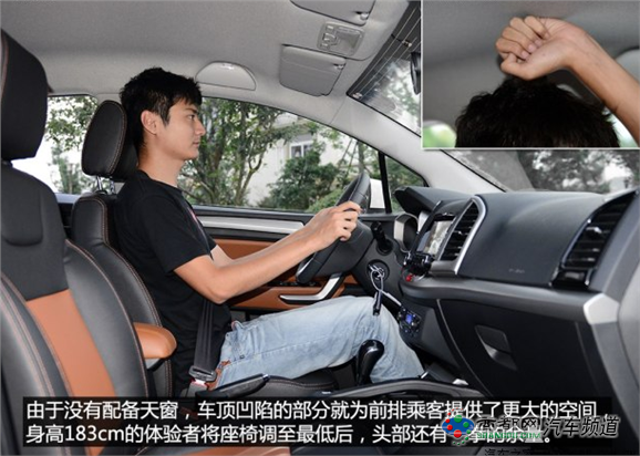 瑞风S3全系都没有配备天窗,车顶凹陷的部分也能为驾驶员提供更大的头部空间。身高183cm的体验者头部还有一拳的余量,表现不错;后排头部空间也是一拳,腿部空间一拳零四指,这样的表现在同级别中具有一定优势。