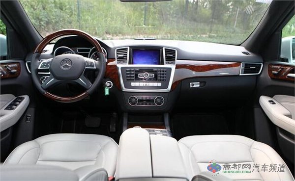 进入到ML400的车内,这里依旧延续了之前ML350的风格,并没有因为换装发动机而改变,从色彩搭配上看,深色的中控台与浅色座椅的组合平添了几分格调。同时材质和工艺质量也都令人满意,对于实木的使用量非常大。