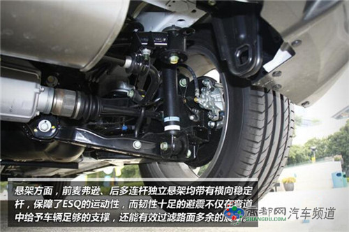四驱系统还有效降低了转向迟滞,方向盘的指向性非常不错。悬架方面,前麦弗逊、后多连杆独立悬架均带有横向稳定杆,保障了ESQ的运动性,而韧性十足的避震不仅在弯道中给予车辆足够的支撑,还能有效过滤路面多余的震动,在运动与舒适之间找到平衡。