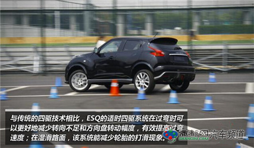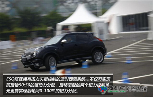 ESQ搭载拥有扭力矢量控制的适时四驱系统,不仅可实现前后轴50:50的驱动力分配,后桥装配的两个扭力控制单元能实现后轮间0-100%的扭力分配。与传统的四驱技术相比,ESQ的适时四驱系统在过弯时可以更好地减少转向不足和方向盘转动幅度,有效提高过弯速度;在湿滑路面,该系统能减少轮胎的打滑现象,大幅提升行驶稳定性。