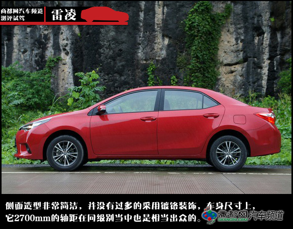 雷凌的侧面造型非常简洁,并没有过多的采用镀铬装饰,这样的设计应该会被更多的年轻消费者接受。在车身尺寸上,它2700mm的轴距在同级别当中也是相当出众的。