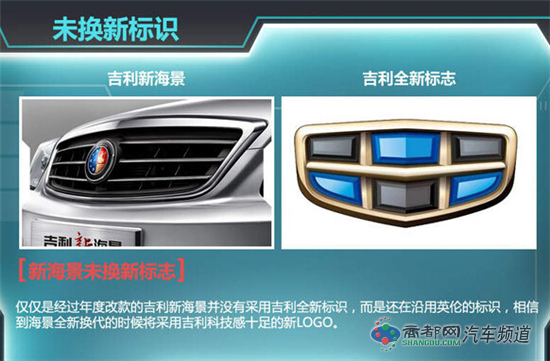 去年北京车展上吉利汽车在深化平台化战略、打造精品车型的策略指引下,吉利汽车发布全新品牌架构,将帝豪、全球鹰、英伦三品牌归一,汇聚为统一的吉利品牌,并采用全新的品牌LOGO,重新布局品牌战略。仅仅是经过年度改款的吉利新海景并没有采用吉利全新标识,而是还在沿用英伦的标识,相信到海景全新换代的时候将采用吉利科技感十足的新LOGO。