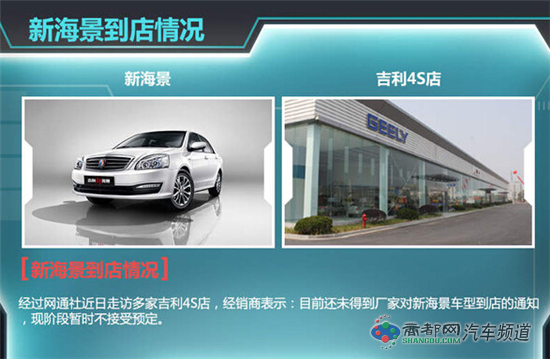 记者走访多家吉利4S店后获悉:目前还未得到厂家对新海景车型到店的通知,现阶段暂时不接受预定。新海景的售价并未因改款而做出调整,将维持原有亲民价格。