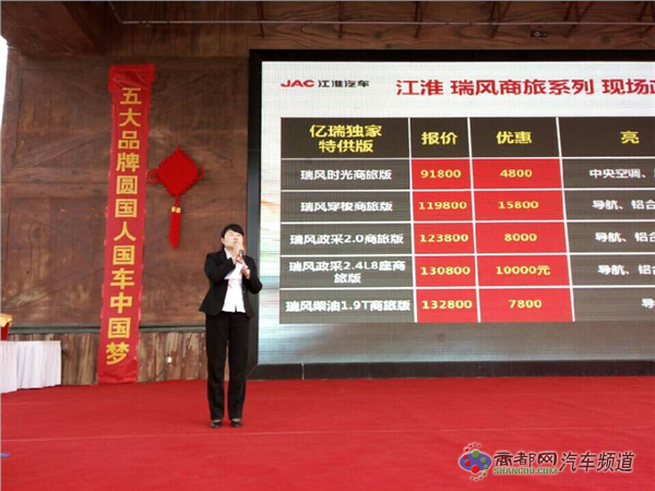 本次活动河南亿瑞也对江淮汽车各系车型做出评比。瑞风M3以节能新动力白变大空间荣获最受消费者喜爱的创业财富奖。瑞风S3,以最实惠,最美观,最易驾的良好表现,单品销量突破80台,荣获本次的销量冠军奖。而动感呈现,及其赋有科技智能感的二代瑞风S5,则吸引了大量的眼球。荣获本次的最具关注奖。