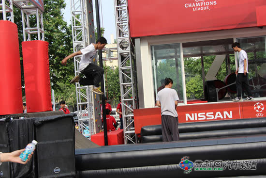 闯关开始,"一键开启"作为首个闯关环节,形象地模拟东风日产车型所配备的无钥匙启动,令参赛人员瞬间启动如发动机般的强劲动力,令人全身激情澎湃。在接下来的闯关过程中,有身形矫健的选手以风驰电掣的速度一飞冲天完成"极速上坡"关卡,好似一道能量闪电惊艳全场;也有队员在连续闯关的过程中,不断尝试寻找窍门,不急不弃,一路过关斩将;还有如蜘蛛侠般的选手以惊人的臂力和敏捷的身手上演绝壁攀爬;更有稳如泰山的队员展现自身超常的平衡力,连闯"车轮吊环、车轮隧道、车轮跨越"三大最难关卡…………一时间,各种"能力者"汇聚活动现场,吸引众多市民观看。