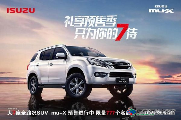 感恩5月诚意预售,mu-X为你的7待送豪礼。为了感谢车迷的支持和厚爱,让喜爱mu-X的消费者第一时间能拥有上市新车,江西五十铃“礼享预售季,只为你的7待”钜惠活动激情开启,前777名预定mu-X的车主,即可享受购车三重大礼,豪礼高至3000元, 数量有限,等你和小伙伴们火速来抢!