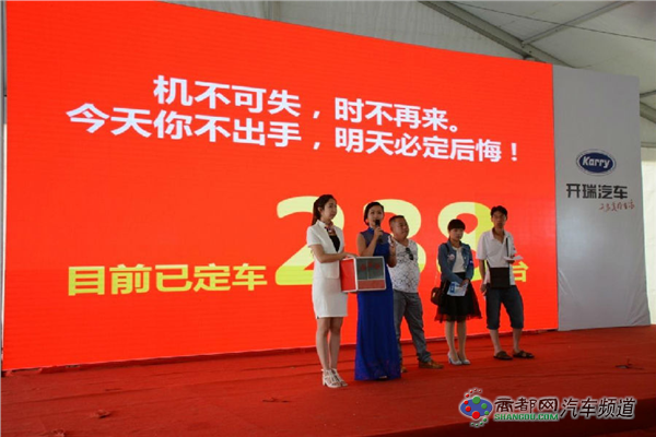 本次活动现场亮相的除了惊艳表演的K50外,开瑞汽车旗下优雅、优胜、优优、优劲等主力型也悉数到场,为客户带来了更为广阔的选择空间。开瑞汽车为本次活动准备了新客户订车礼、老客户酬宾礼、微信红包礼、购车抽奖礼等多重钜惠豪礼。来自南阳的一位装修店的老板王先生,更是连中三个大奖,满载而归。