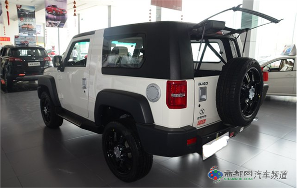 内饰方面,设计师也有着自己的追求,它并不“简单粗暴”,甚至还有点“小精致”。像牧马人一样,仪表台占据了车内空间很短的一部分,尽量给乘员以较大的乘坐空间。纯黑的色调也符合这款车的风格。多功能方向盘、行车电脑、外接音源娱乐系统、手动空调等都一应俱全。在其他舒适性配置方面,我们还发现了电动调节后视镜,并带有电折叠功能。另外,遥控钥匙、仪表亮度调节、大灯高度调节/延时照明、后排空调出风口都是标准配置。