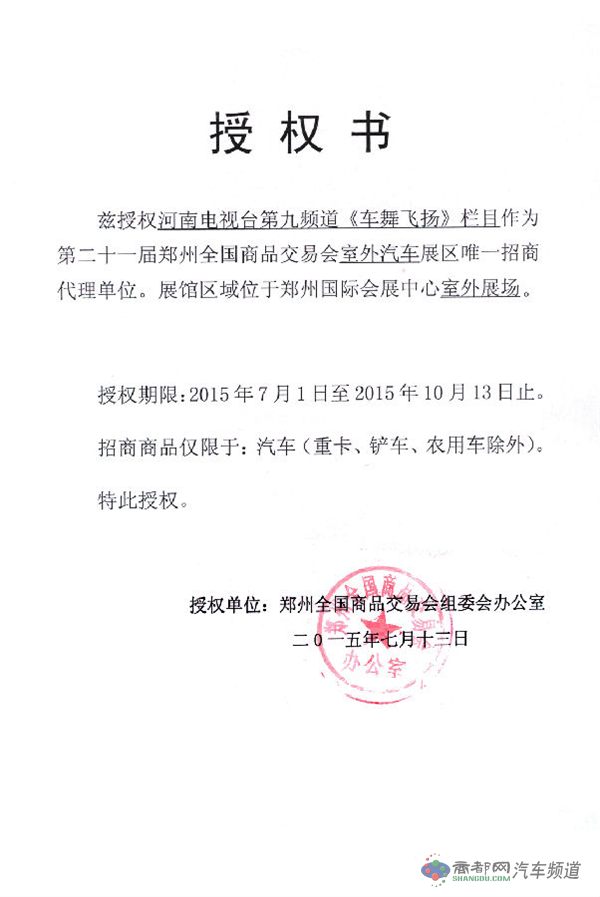 暨第二十一届郑州全国商品交易会汽车展将于2015年10月10—13日在郑东新区郑州国际会展中心盛大开幕。