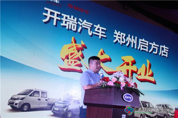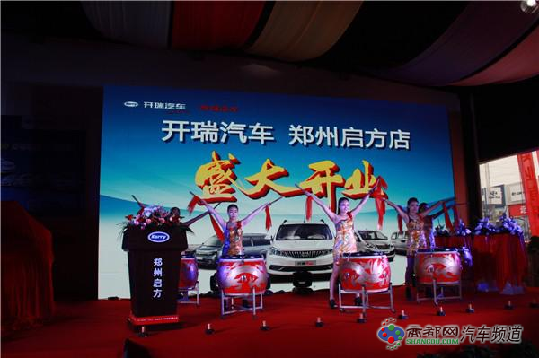 2015年9月22日,位于金水区桑园汽车公园的开瑞汽车郑州启方4S店开业典礼隆重举行。作为郑州地区开瑞汽车唯一授权专营店,本次郑州启方4S店的开业盛典现场可谓高朋满座、嘉宾云集。厂商领导、郑州地区的主流媒体、开瑞汽车的粉丝等众多嘉宾参加了本次庆典。