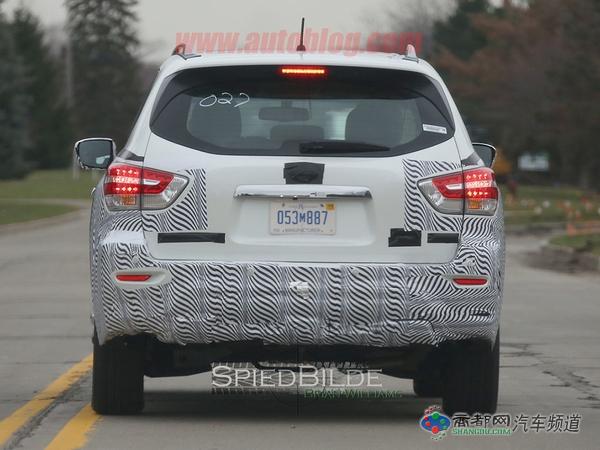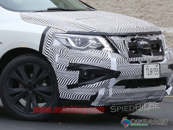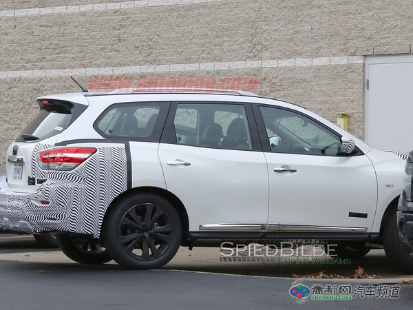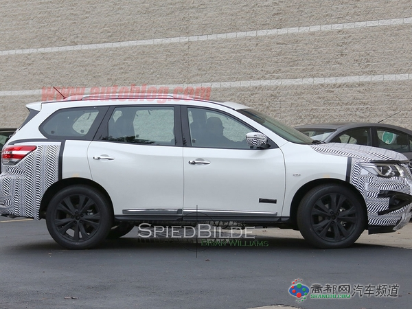 日产新款Pathfinder的低伪装谍照被外媒曝光,照片中只有车头和车尾部分做了伪装,但仍能看出新车前后灯组等细节设计。Pathfinder是一款中大型SUV,定位于楼兰和途乐之间,预计2016年发布。