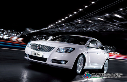 以低俯的姿态固定住别克盾形标识。引擎罩轮廓线如雕塑般嵌入两侧,直冲向上,与两侧窗线相连,勾勒出一种平衡的协动感。