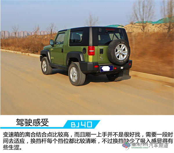 导读:北汽的BJ40我们已经非常熟悉了,作为一款纯off road越野SUV,BJ40配备了非承载式车身,具有超高的离地间隙。记得在去年十月的阿拉善英雄会上,在沙漠中我曾体验过未经改装过的BJ40,我的同事在越野场地中也试驾过这款车,都表现出了不错的实力,而今天的它来到了城市中,会不会出现水土不服呢。