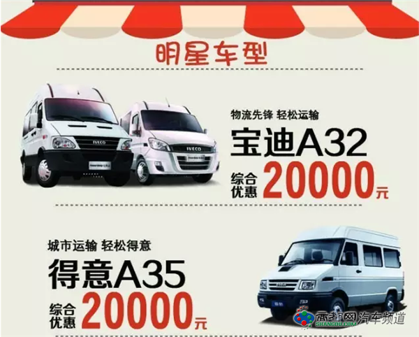 导读:依维柯百日钜惠,明星车型综合优惠2万元!