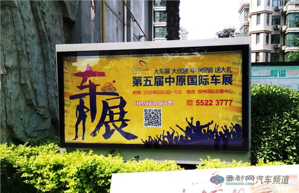 距离6月3日-6日开幕的第五届郑州国际车展仅剩17天的时间了,作为中原地区首个国字头B+级车展,2016第五届中原国际车展已正式开启全方位、多渠道整合覆盖的密集型宣传攻势,中原国际车展醒目的户外广告已开始覆盖郑州的大街小巷,小伙伴们最近出门遇到了吗?