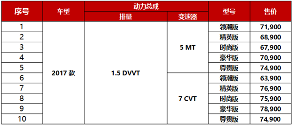 同时上市的还有2017款艾瑞泽5车型,共推出1.5 DVVT动力共10款车型,售价63.900元到78.900元。