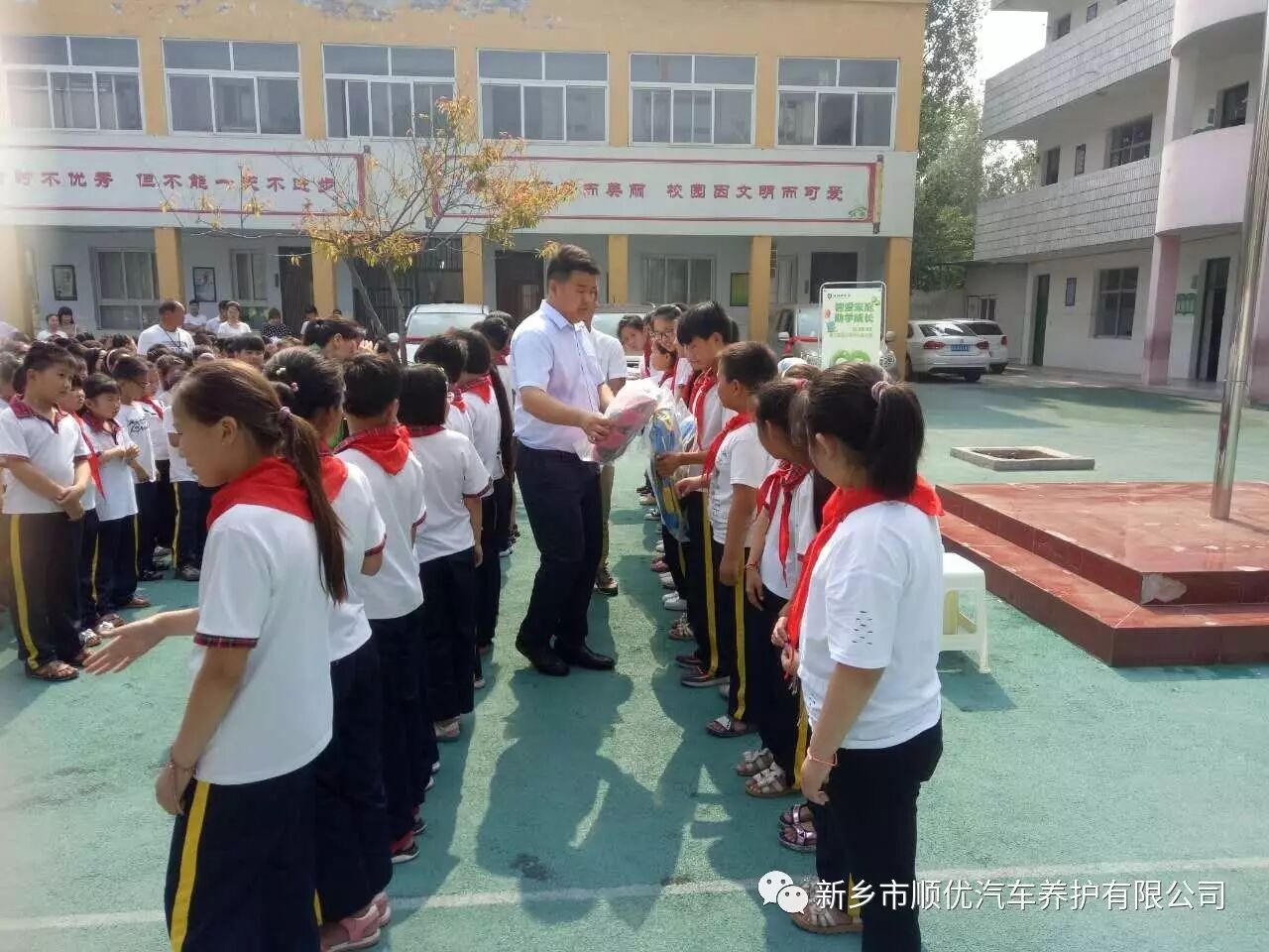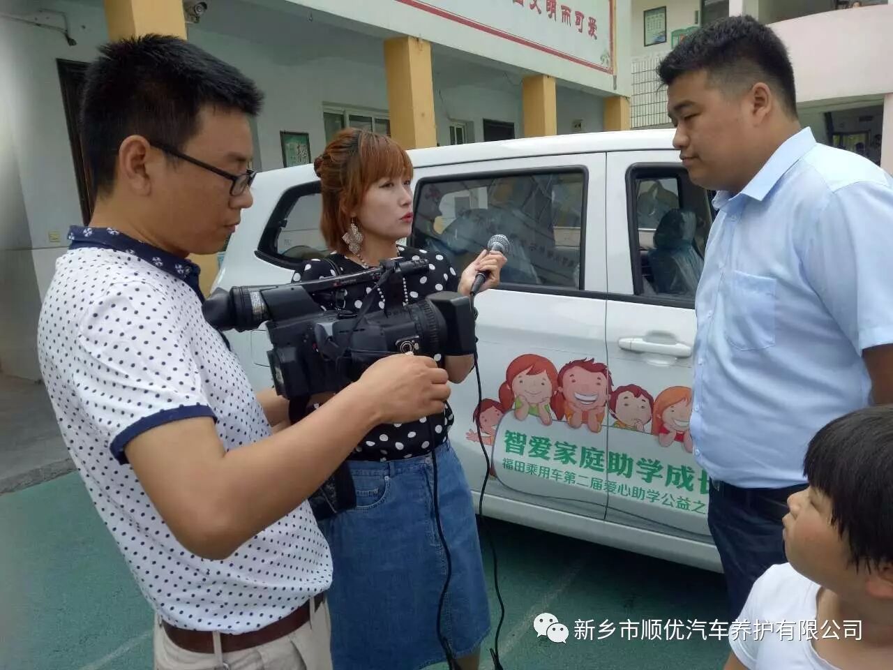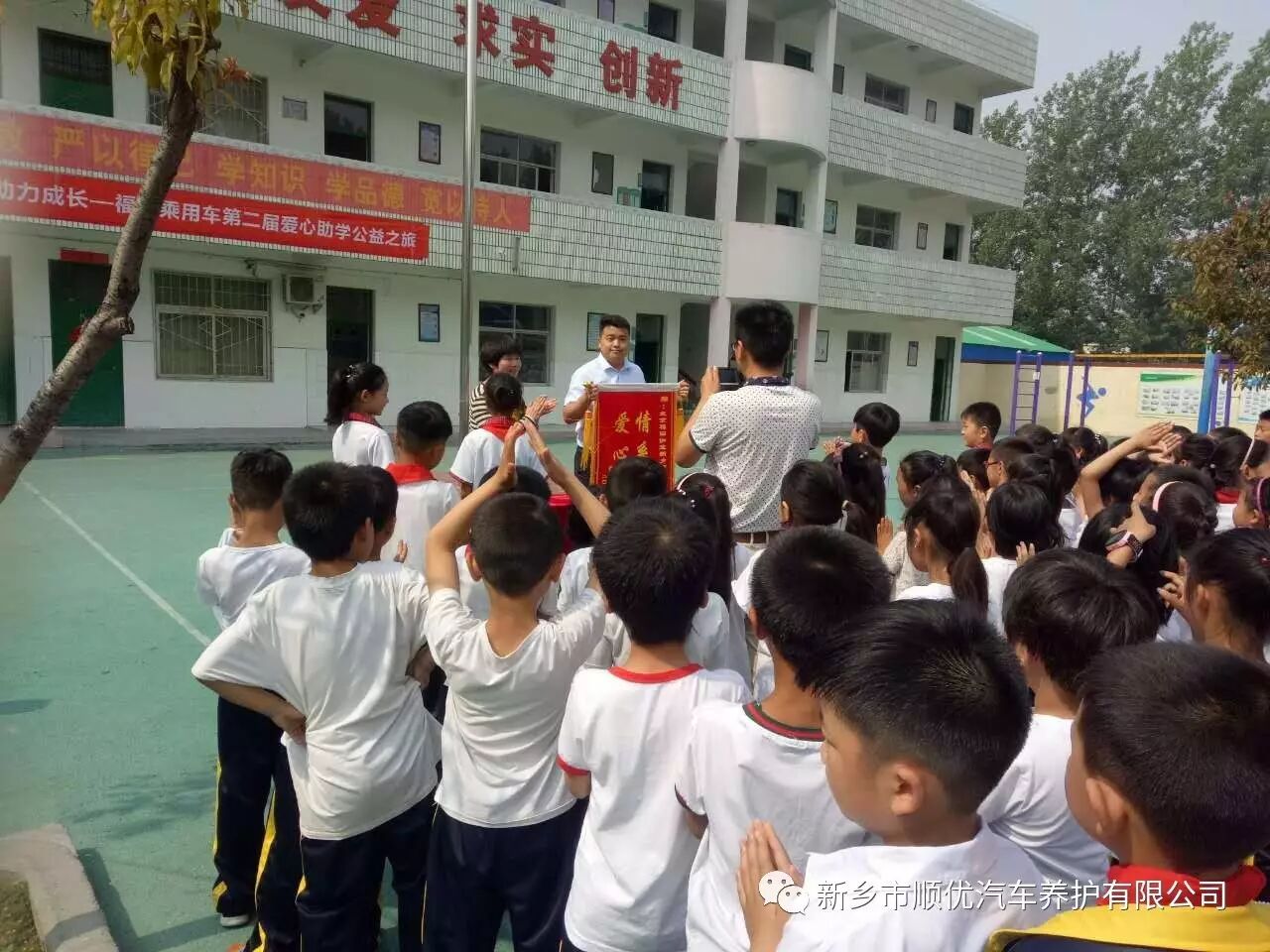 北京福田伽途新乡顺优4s店,在六一儿童节期间,带着总价值12000元文具礼品到关堤乡大介山小学隆重举行《智爱家庭助学成长福田乘用车第二届爱心助学公益活动》。