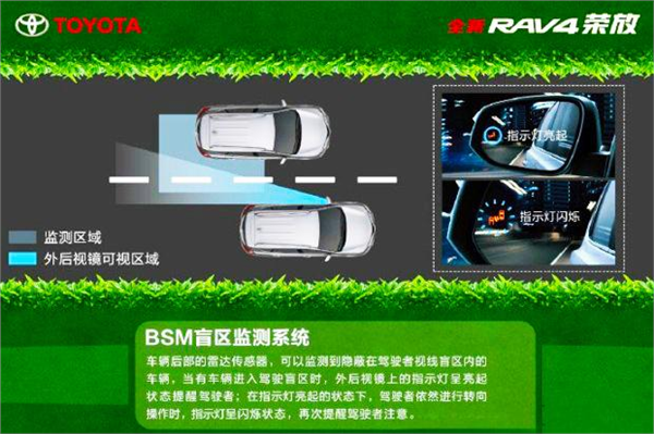 当然,车前、车侧、车后的盲区很多,荣放的中控屏还可分屏显示各盲区情况,任何一个盲区内有车辆或行人,都可以随时发现,从此与剐蹭说拜拜。此外,全新RAV4荣放还配备了盲区监测系统BSM和倒车侧后方盲点警示系统RCTA,可以检测到隐藏在驾驶者视线盲区内的车辆,当有车辆进入驾驶盲区时,系统能及时提醒,路上常遇到的“鬼探头”等紧急情况就可化解,诸多让人痛心的交通事故会因此减少不少。