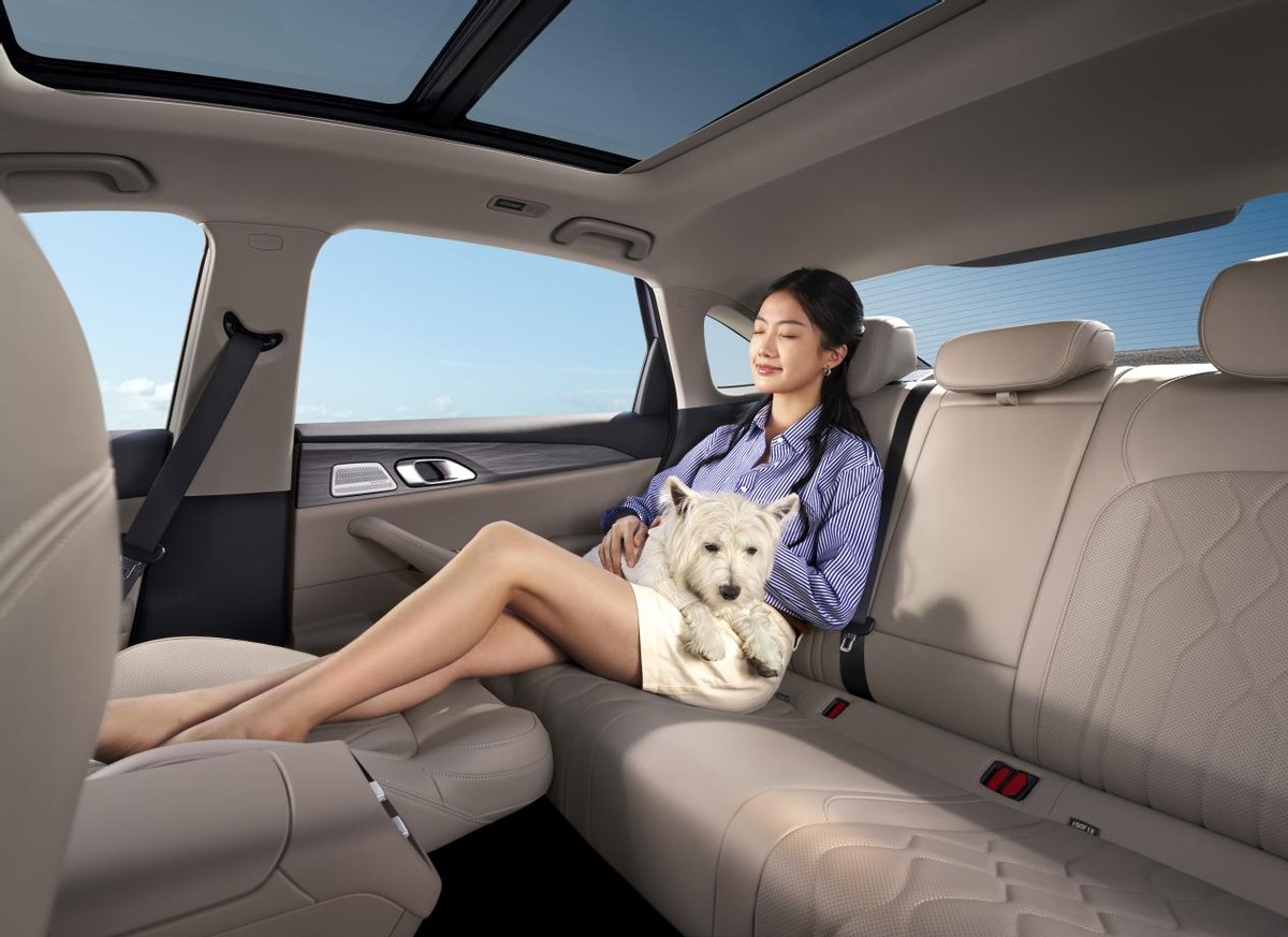 空间新标杆,轻松装得下全家的美好生活。吉利银河A7 EV拥有同级第一的4935mm车长与2845mm轴距,以及84.87%超高得房率,将车身尺寸转化为真实可感知的乘坐体验,实现1080mm前排腿部空间、950mm后排腿部空间、282mm后排纯平中通道和1.5米宽大沙发,每座皆C位。宽绰之余,新车还配备了棉花糖座椅、满配三档通风加热与主副驾电动调节,久坐不累的同时乘员还可感受到头等舱般的舒适。同时,全车28处共计634L储物容积和547L超大后备箱空间,还可完美兼顾用户的储物需求。