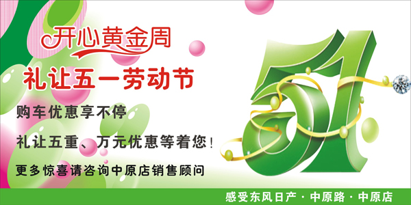 近日,酷车中国记者从东风日产郑州中原专营店获悉,为了回馈广大客户,专营店特推出“礼让五一劳动节”的促销活动,在5月1日——5月10日期间为广大东风日产的看车、购车用户准备了五重大礼。