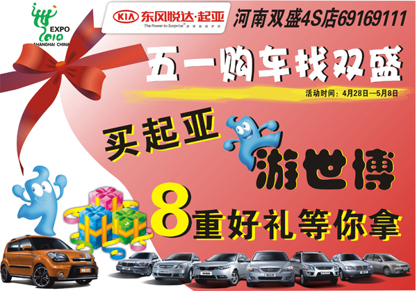 导读:五一长假即将来临,看着窗外吐绿的柳枝,和煦的阳光,好好放松自己的时候到了,为答谢您长期以来对河南双盛汽车的鼎力支持,特开展“购起亚游世博 8重好礼等你拿“五一特惠周活动,让您春季踏青无忧,尽享煦日阳光,暖暖春风! 活动期间: 1、购SOUL,均可获赠包括前后保险杠护杠、前、侧、后裙、扰流板、油箱口盖等在内的整套精美装