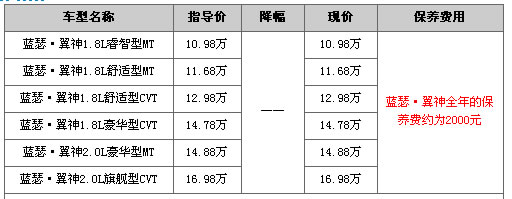 蓝瑟?翼神车型自上市以来价格仍未出现过现金方面的优惠。现据销售人员介绍,2010深港澳车展期间,现场订购蓝瑟?翼神的客户将可获赠价值2000元的导航。